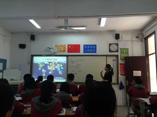 沈伟老师授课的内容是《世界是普遍联系的》。首先沈伟老师结合当下热点时政G20杭州峰会,从不同的方面谈谈你对G20峰会的认识。课堂上以“中国承办G20杭州峰会,值得吗?”为主题的小辩论,将课堂学习氛围推向了高潮,学生唇枪舌战,思想的火花相互碰撞。在同学们热烈讨论后,沈伟老师从知识点的高度对学生们的讨论进行总结。本节课教学立足于知识,但又高于理论,拔高了学生的知识和认知,理论与实践相结合。