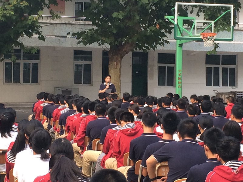 9月26日下午班会课,高一年级学生齐聚篮球场,召开了本学期第一次学生大会。