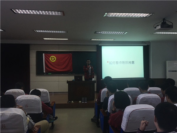 本次团课的主题是中学生心理调适,由南理工大三学生蔡雨杭同学为九中新高一的同学们分析了睡眠对高中生的重要性,他以生动的生活案例以及幽默的演讲风格,与同学们积极互动,并引导同学们根据自身的心理情况,学会高效的学习,保证每晚充足的睡眠,以达到第二天在学校能精神饱满的投入到一天的学习中。