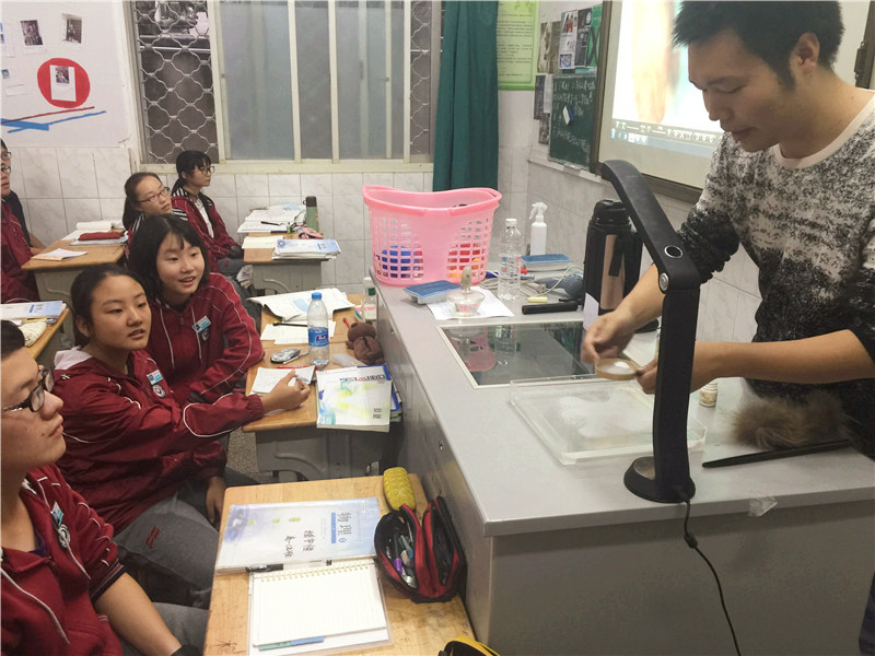 生动有趣的实验和令人惊叹的视频贯穿了整个活动,不仅充分展示了物理是一门以实验为基础的学科,并且使同学们掌握了通过实验探究培养科学思维的物理学习方法。尤其是“油膜”实验更是激动人心,蔡老师把手插入水中的瞬间,台下“哇”声一片,不仅加强了师生互动,也让同学们切身感受到了身边的物理。最后关于“电梯坠落前跳起会不会死”的小组讨论,也引发了同学们激烈的争论,形形色色的猜想和推理碰擦出了火花。通过此次听讲,同学们对物理产生了浓厚的兴趣,纷纷表示会用更好的心态去面对相对较难的高中物理。