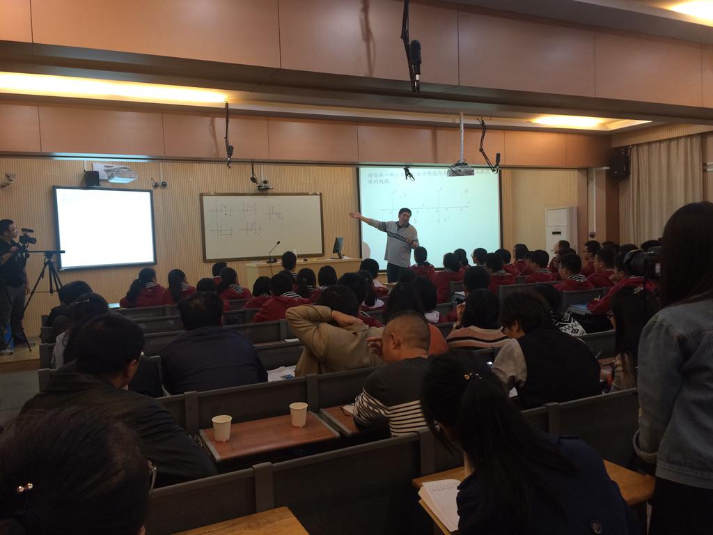 2016年10月25日13:40,2016-2017学年度南京市高中数学教师教研活动在南京市第九中学正式开始,我校封平强老师开设了公开课《函数与方程(一)》,金陵中学张松年老师评课并作报告《课堂教学的自然发展》,我校张荣彬老师作报告《促进数学深度学习的尝试与思考》。