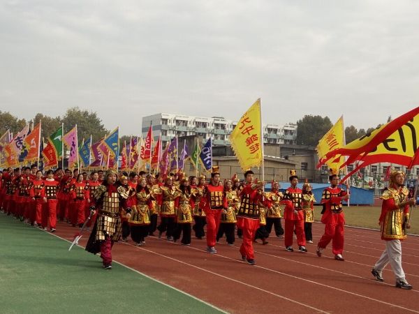 此次运动会开幕式表演的主题是“民族”。各班方阵各显神通,高一年级各方阵表演的是民族特色体育运动项目:拔河、太极、扇舞、剑舞等等。高二年级各方阵表演的是民族特色文化艺术活动:蒙古族、回族、藏族等。学生们身着色彩艳丽的民族服装,展示富有民族特色的体育项目和文化活动,充分展示了九中博雅尚美的校园文化。最后上场的是高三年级师生方阵,只见教师身着古代将军服装,学生身着古代士兵的服装,高举写有班主任姓氏的的彩旗在气势恢宏的《出征》曲中威风凛凛的出场。同学们高呼呼口号:九中雄起!高三威武!年级部主任吴昊老师高举大旗向主席团请示:高三全体将士厉兵秣马,准备就绪,请命出征!只见张恒柱校长大手一挥:出征!整个开幕式精彩不断,尽展九中学子青春风采。