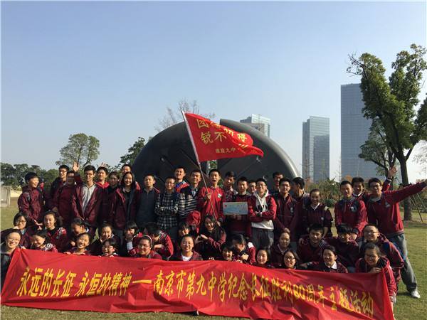 为纪念红军长征胜利80周年,传承长征精神,体验长征意志,11月15日,南京市第九中学德育处、校团委组织全体高一学生以“永远的长征 永恒的精神”为主题的10公里徒步活动。通过徒步、誓师等仪式弘扬长征精神,将“红色旗帜”在青少年中传递,使学生们成为红色精神的小小传承人。