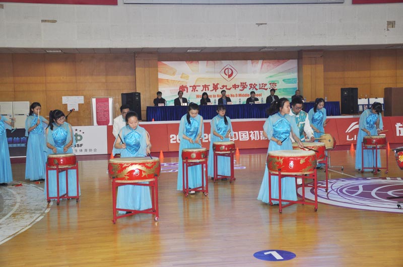 开幕式简短而热烈,首先由九中文艺中心献上暖场表演,孩子们献上精心准备的合唱《韵动南京》和打击乐《龙腾虎跃》,营造热烈的气氛。接着南京市第九中学的张恒柱校长发表了热情洋溢的欢迎词,江苏省教育厅体卫艺处张鲤鲤处长宣布开幕,接下来由南京市教育局张利明副局长开球,南京市第九中学男篮与江苏省灌云高级中学男篮打响本次比赛的揭幕战。双方你争我抢、精彩纷呈,最终南京市第九中学以83:44的大比分毫无悬念地赢得胜利。