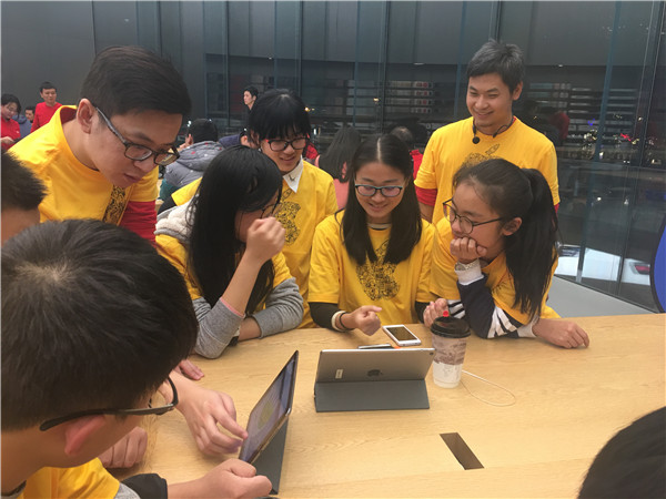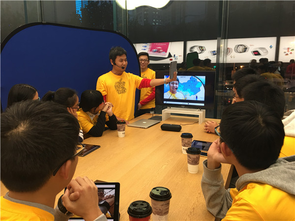 11月25日下午,南京市第九中学“辰汐”地理社团10名同学在指导老师的带领下走进苹果艾尚旗舰店,体验里一把“高科技”。