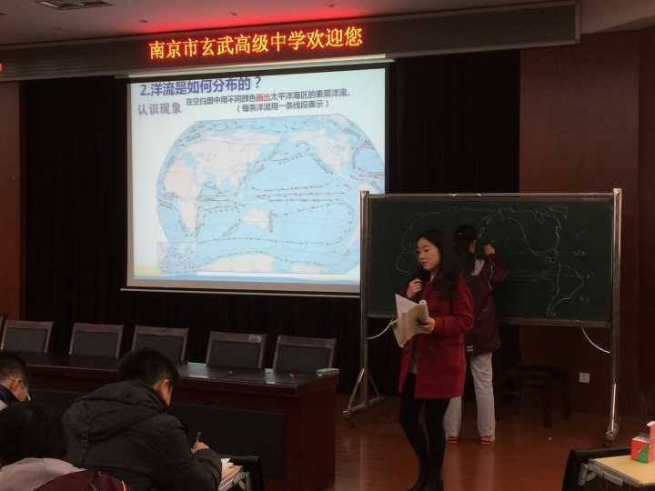 12月2日上午9时,我校青年地理老师张瑞寒在玄武高级中学开设了一节区级公开课《大规模的海水运动》。课前,她用粉笔手绘了世界地图,精准的定位吸引了全体师生的注意,随后以泰坦尼克号沉没这一真实事件导入新课。接下来,她引导学生在空白的地图上画出表层洋流的分布,并和同学们一起探究洋流的成因。通过学生板画、辨析,清晰地展示了洋流的成因和分布。最后,由洋流联系学生的生活,将地理与美术、历史等学科联系起来,充分调动了学生的积极性,电影情境的再现更是引起了学生们的热烈讨论。她用条理清晰的问题串,创设了结构化的地理课堂,展示了扎实的教学功底,获得全区初高中老师的一致好评!区教研员李琳老师点评:这是一堂有意思的地理课,一个个问题串联起整节课,逻辑结构完整,素材贴近学生的生活,学生非常享受这样的课堂。