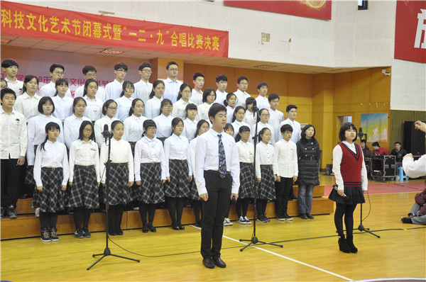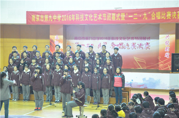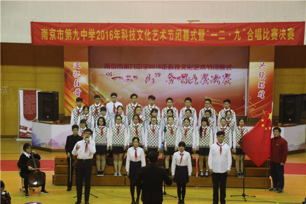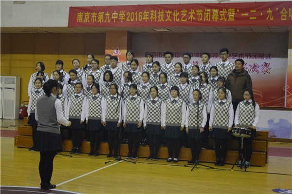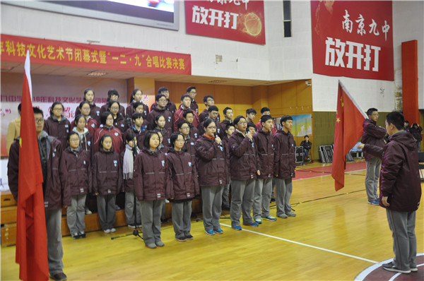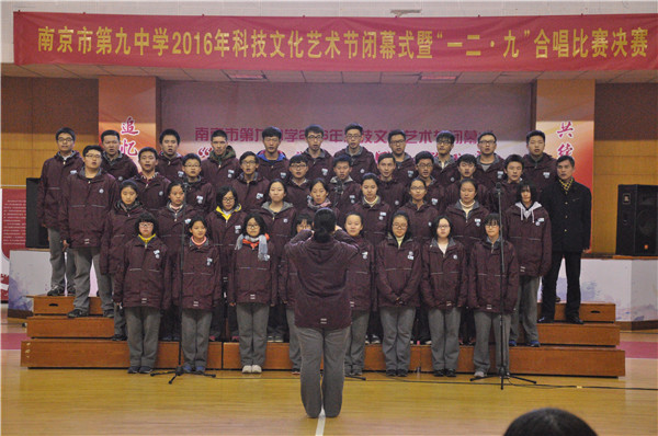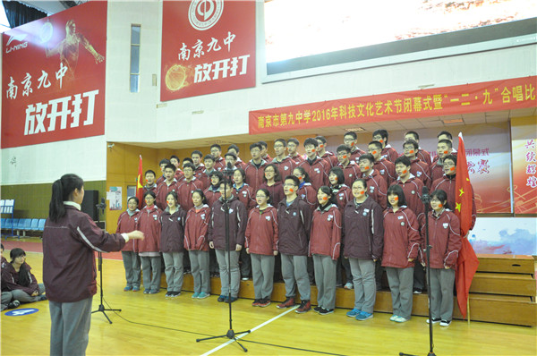 “一二·九”合唱比赛是南京市第九中学的一项传统赛事,也是推进中学生思想建设工程的重要载体,是倍受广大师生欢迎的一项精品校园文化活动。同学们用飞扬的歌声吟唱难忘岁月,用熟悉的旋律演绎时代激情。合唱比赛不仅点燃了同学们的爱国主义热情,增强了责任感和使命感,激励同学们把良好的革命品质和创新精神带到今后的学习生活中去,更突出展示了南京市第九中学青年学生朝气蓬勃、奋发进取的精神面貌和与祖国共奋进、与学校同发展的时代风采。