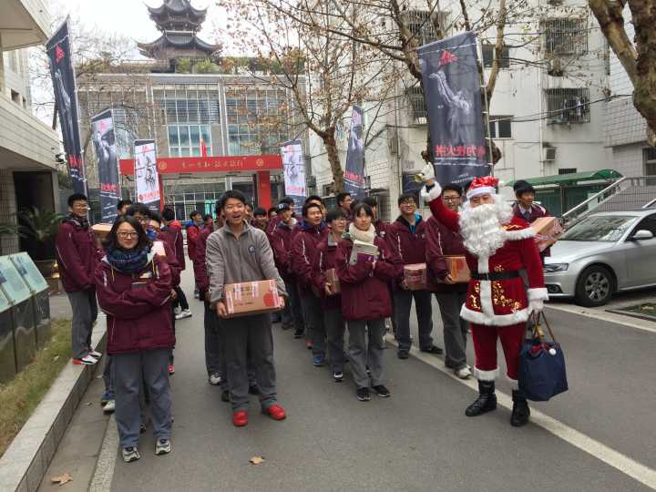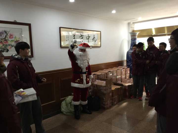 12月24日中午12点30分,南京九中高三年级部主任吴昊老师带领各班班长等学生,开展圣诞平安夜赠送平安果活动。吴主任装扮成圣诞爷爷,给每个班级的学生不仅送去了平安果,也赠送了满满的祝福:祝福每一位九中高三学子平安快乐,在接下来的一模考试中取得好成绩。