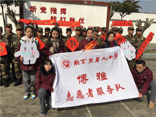 2017年1月22日,南京某部队军营中歌声嘹亮,琴声飞扬。由南京市第九中学“博雅”志愿者服务队在这里进行了一场别开生面的慰问活动。