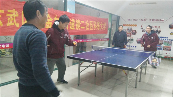 为丰富社区居民的文体生活,倡导健康锻炼方式,2016年2月1日上午午,锁二社区组织社区乒乓球爱好者们和九中的志愿者们举办了一场别开生面的社区乒乓球比赛。