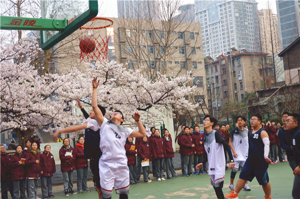 温暖的春风吹化了山涧的冰雪,吹绿了一江春水。温柔的春歌唤醒了沉睡的大地,在这樱花开放的季节,南京市第九中学迎来了2017年“弘光杯”篮球赛。出席今天活动的领导有南京市第九中学党委书记林啟红老师,南京市第九中学副校长高骁俊老师,南京九中篮球队总教练董邕宁老师、德育处副主任孙燕老师,高一年级主任封平强老师。