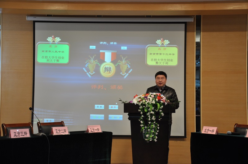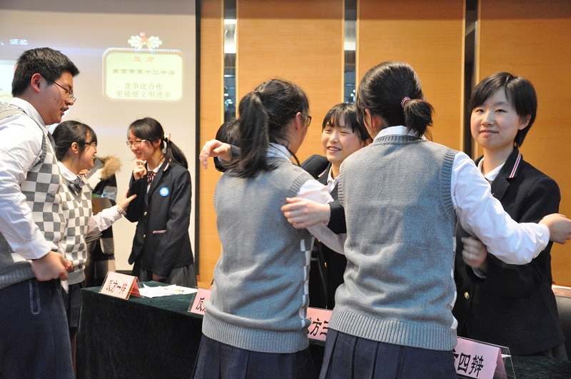 2017年3月28日下午,在南京市人民中学进行了玄武区五四辩论赛初赛。担当正方的南京市第九中学在与反方南京市玄武高级中学经过激烈的唇枪舌战,最终成功突围,进军决赛。2017年3月30日下午,玄武区五四辩论赛决赛在南京市人民中学进行九中对战十三中。正方南京九中一辩用慷慨激昂的语言陈述己方“合作比竞争更能促进文明进步”的观点。反方十三中则层层剖析,论证己方“竞争比合作更能促进文明进步”的观点。在随后的攻辩环节中,双方更是争锋相对、步步紧逼,现场气氛迅速升温,达到白热化阶段。辩手们精辟的措辞,犀利的言辞,展现出咄咄逼人的气势。随后,比赛进入总结陈词环节。正反双方辩手清晰的思路和巧妙的陈词给观众留下了深刻印象。在宣布结果之前,代替了紧张和焦虑,双方辩友主动拥抱、握手、合影,展现了友谊第一、比赛第二的精神。接着,评委对本次辩论赛做了精彩的点评,他指出了双方的优点和不足,并表示期待大家的进步。最终九中惜败十三中,南京九中的陆瑞翎获“最佳辩手”称号。