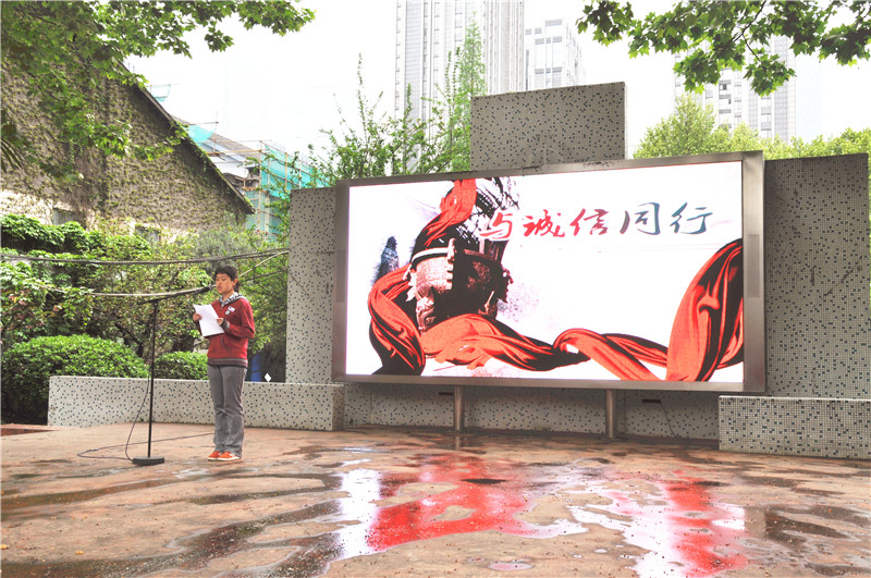 2017年4月17日,南京市第九中学开展“与诚信同行”主题晨会。
