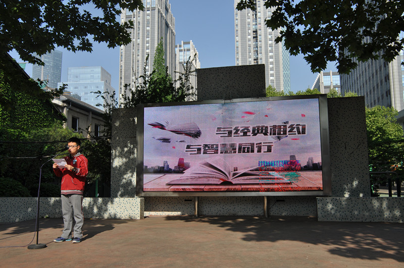 1995年联合国教科文组织正式确定每年的4月23日为“世界读书日”,以鼓励更多的人们参与到阅读的行列中来。南京市第九中学也一直坚持培养学生养成爱读书、多读书、勤读书、读好书的良好习惯。在读书中开拓视野,在读书中感悟人生,在读书中学会思考,在读书中快乐成长。在此次主题晨会上,来自高一(6)班的濮天同学做了题为《信息时代,我们怎样读书》的国旗下讲话,分享他自己的读书心得,提出要像吃饭一样读书、要像打井一样读书、要像交友一样读书。