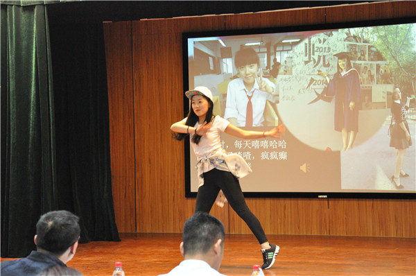 决赛中,10位青年教师各显神通,张瑞寒老师在决赛中,准备充分,在演讲环节中以“优雅”为主题,讲述入职一年来在九中校园中发现的优雅之师,并期待着九中的学生在“博雅尚美”的校园中优雅的成长。在才艺展示环节中,以“青春志,致青春”为主线,把街舞、现代舞和唱歌融合在一起,并将自己的书法作品用动画呈现出来,让评委眼前一亮,得到一致好评。最终张瑞寒老师取得了中学组第三名的好成绩,荣获玄武区青年教师“塑形象 正当时”风采大赛二等奖。