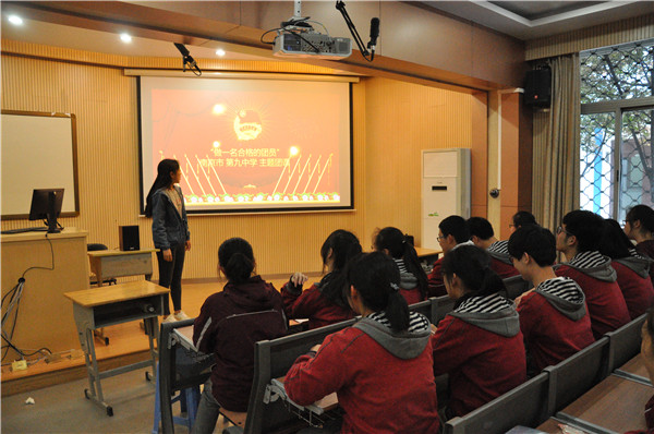 2017年4月26日中午,南京市第九中学在弘光楼106举行“学习总书记讲话 做一名合格团员”主题团课——暨学生干部培训。本次团课有德育处、团委共同组织,高二年级各班团支部书记共同参加。