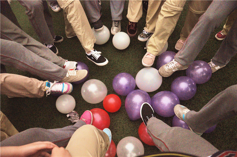 本次活动分为四个环节,分别是斗地主、一个都不能少、烦恼大爆炸和疯狂的人椅。“斗地主”这个游戏主要是为了帮助孩子们感受身体知觉,通过按摩和给活动前后自己身体的舒适度打分,提醒孩子在学习的同时一定要注意关照身体。“一个都不能少”则是通过让全班同学挑战如何站在一张大报纸上,帮助同学们认识到只要全班齐心协力,再困难的事情也有解决办法。“烦恼大爆炸”环节中,同学们分享了当下的烦恼和负性情绪体验(如紧张、焦虑),团辅领导老师告诉孩子们,在这一阶段感受到某些负性情绪或者情绪在两极间波动是正常的,不必要产生进一步的担忧,同时处理负性情绪的方法不一定是消除它,也可以是与之共存,带着情绪前行。“疯狂的人椅”则将气氛推到了高潮,在吴昊老师的建议下,文科班所有同学聚成一个大圈,共同完成了人椅的搭建,最后孩子们情不自禁地为自己鼓掌。