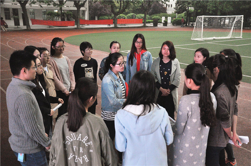在南师大心理学院研究生的带领下,学生们整整一个小时都饱含热情,班主任老师也愉快的加入到活动中去。所有的老师们都期望高三文科班的孩子们能在接下来的一个月时间感知集体的力量,同时更从容的应对接下来的学习和考试。(庄瑜璐)