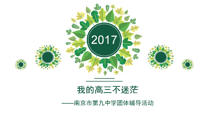 2017年5月8日,南京市第九中学德育处、高三年级组邀请南京师范大学心理学院的18名研究生给高三文科班的孩子们带来一次主题为“我的高三不迷茫”的主题团辅活动。张恒柱校长、高三年级主任吴昊老师、高三文科班全体学生和班主任老师参与了本次活动。