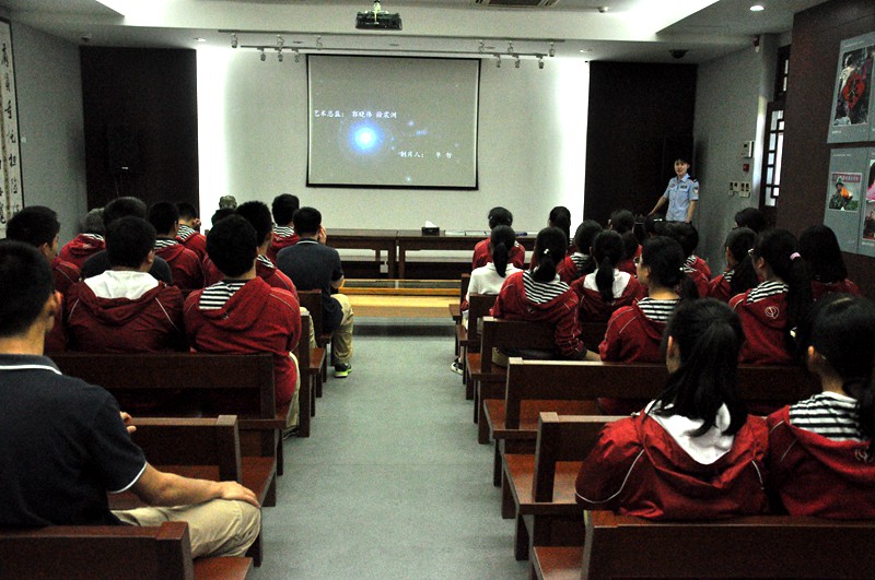 在讲解员的引导下,同学们首先来到了放映厅,观赏了一部时长约二十分钟的禁毒主题微电影,微电影讲述了本来温馨和睦的家庭,因儿子吸毒而四分五裂乃至家破人亡的悲剧,由此引出了本次参观的主题:“珍惜生命,远离毒品”。
