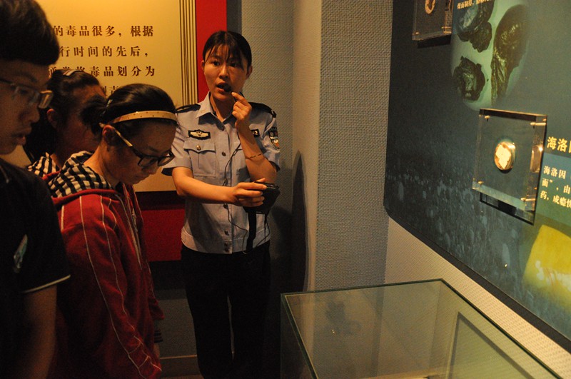 接着,同学们在讲解员的带领下,顺次参观了五个展厅,了解了毒品的种类、发源与危害,以及国内外禁毒的历史与措施。品学兼优的学生因吸毒而堕落为阶下囚,无辜的路人丧生在“毒驾”的车轮下……一个个骇人听闻的案例,一张张触目惊心的图片,一个个栩栩如生的标本,以及讲解员生动形象、细致详实的讲解使得同学们体会到毒品对人们身体的摧残,对人们灵魂的扭曲、人格的侵蚀,对一个家庭乃至于整个社会的沉痛打击。