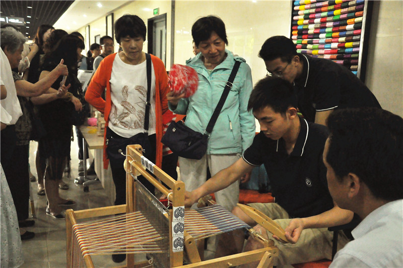 展示环节中,同学们有模有样的织布过程让很多市民不禁驻足于此,好奇地询问如何操作织机。面对大家的问题,同学们也耐心说明,并分解动作进行演示。据悉,为了这次活动,南京九中的同学们认真准备。在此前一个多月的时间里,每周,同学们都会利用休息的时间到江宁织造府,跟随南京云锦的国家级和南京市非物质文化遗产继承人学习如何织布。