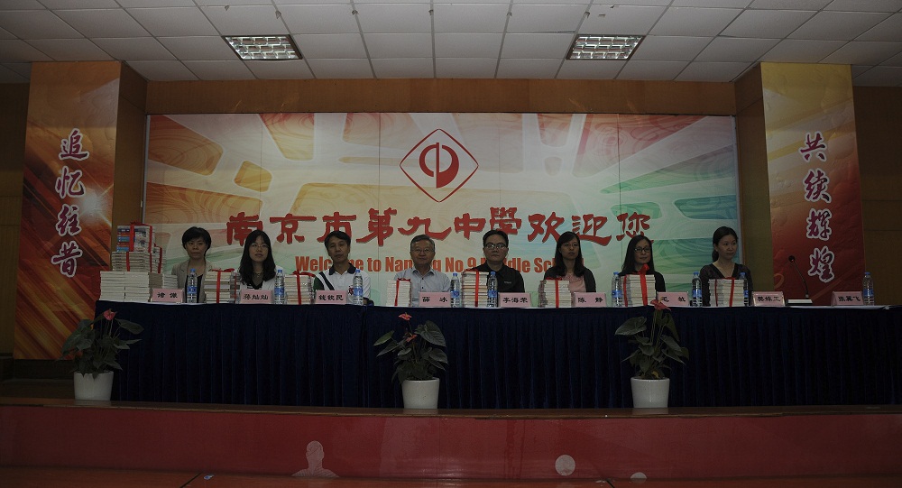 活动第一部分由南京市委宣传部副部长、市文联党组书记陈炜,南京市文联巡视员李海荣代表南京市文联向南京市第九中学赠送了南京南京代表作家、南京市文联签约作家、重点文艺资助项目的作品和经典名著。南京九中诸谦副校长代表全校师生对本次活动的举办和南京文联带来的书籍表示感谢,并表示经典阅读可以增加同学们的民族认同感和文化认同感。
