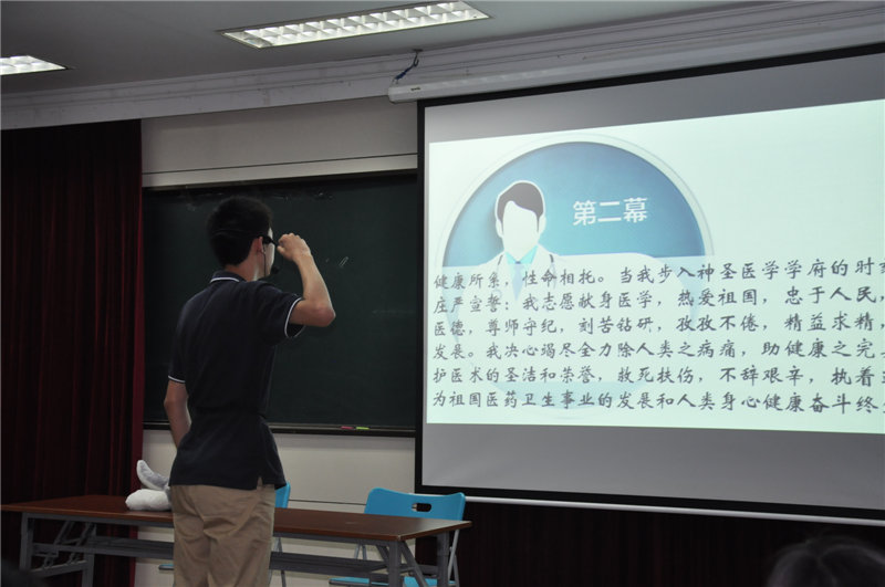 高一12班则开展了“点亮高中生活”生涯班会。通过前期小调查,班级同学心中的理想职业top1是医生,几位同学以情景剧形式展现医生的一天是怎样度过的。之后,主持人提出疑问,医生职业的真实情形到底是不是如刚刚所表演的那样?在大家表现出困惑时,施月婷校医和南京中医药大学的一名在读研究生现身《职场有约》生涯访谈,用真实的经历告诉同学们为什么自己选择学医,以及成为一名优秀住院医师的“升级打怪”之路。最后,大家一起为十年后的自己设计了个性名片,在易相鸥老师对大家“立志、明志、逐梦”的期许中结束了本节班会。