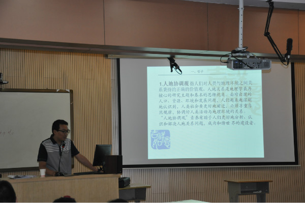 吴向军老师围绕“核心素养”,从 “人地协调观、综合思维和区域认知”这三个方面给老师们带来一场精彩的报告。吴老师从一副漫画入手,以综合思维核心素养为例,提出地理核心素养的课堂教学落实的策略,将核心素养与地理课程标准结合起来。最后吴老师对玄武区的地理教师们在各种赛课、评比中取得的优异成绩表示祝贺。