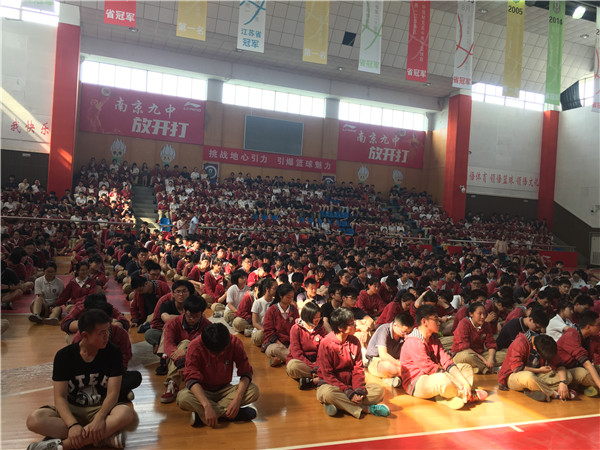 6月4日下午3时30分,在九中体育馆三楼举行高三年级部高考前壮行大会,会议由高三年级部主任吴昊主持,18位班主任及全体高三学生一起参加。首先,吴主任从自身的高考经历出发,谈谈他对高考的感受和汲取的经验,拉近了与学生的距离,也引起学生的共鸣。然后,吴主任宣讲了高考过程中的一系列要求和注意事项,力争使每位学生了解、掌握高考的规则。接着,18位班主任向学生们展示了“锦囊妙计”——年级部特别为每位学生定制的徽章。最后,全体参会师生振臂高呼“高考必胜、九中加油”的口号,为这次壮行大会画上圆满的句号。