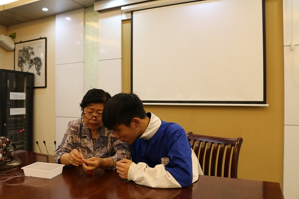 14日,九中邀请了DIY专家陈敢老师到校教澳门学生做手工---自编钥匙扣。课上,专家教得仔细,学生学得投入。在短短的一个小时里,每个同学都完成了自己的第一件手工作品,在作品完成的那一刻,同学们的开心和激动无法用言语来表达。在最后的交流环节,九中文艺中心还特地为来访的客人们精心准备了一台小型的文艺演出,无论是气势磅礴的民乐合奏、还是轻盈婀娜的独舞、无论是精彩的钢琴独奏、笙合奏,还是悦耳动听的女生小合唱,都给澳门的学生呈现了一场视听的享受。