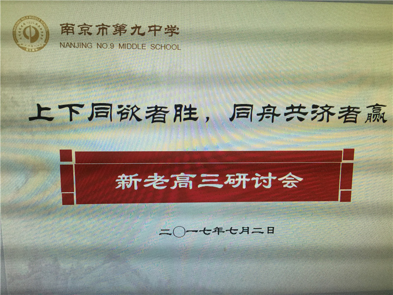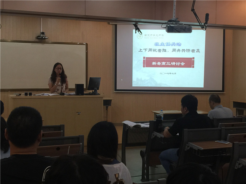 2017年7月3号上午,南京九中在学校报告厅举行了2017年高三教育教学工作会议,我校2017届和2018届新老高三全体教师欢聚一堂,共同研讨高三教育教学工作。会议由教科处主任沈伟老师主持,出席会议的学校领导有张恒柱校长、林啟红书记、诸谦副校长、邵长峰副校长、张翼飞校长助理。