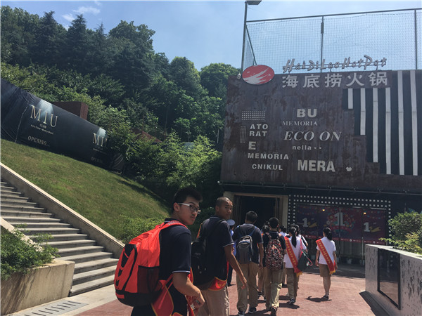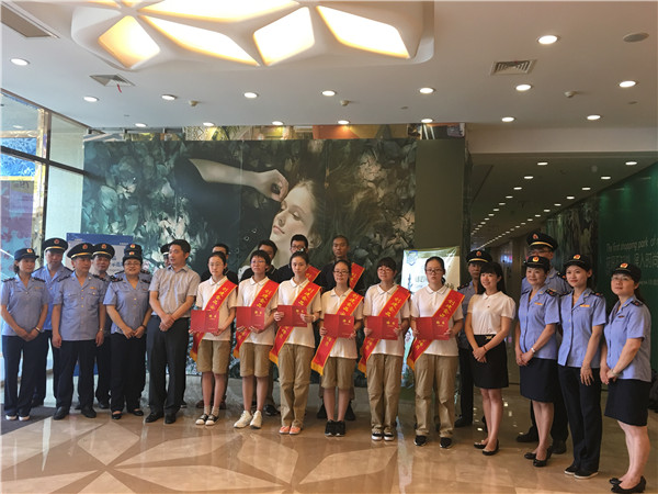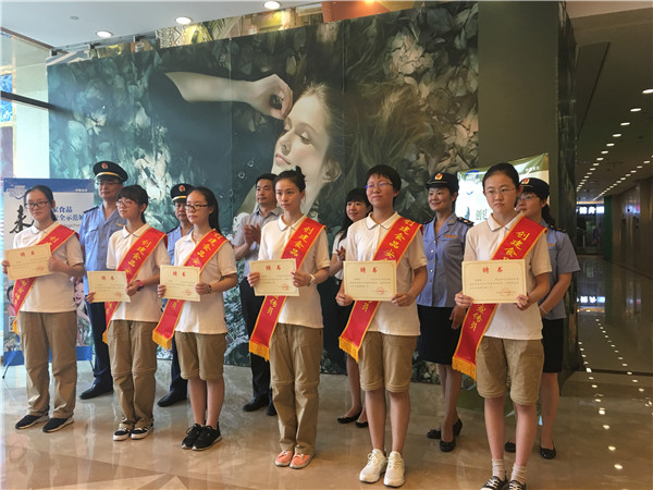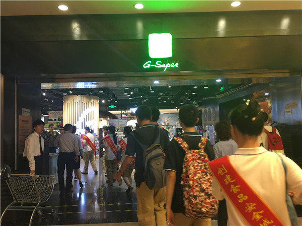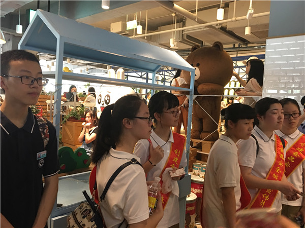 7月15日早上10点,高二(13)班的12名同学来到凯瑟琳环亚广场参加市场局实践基地启动仪式。