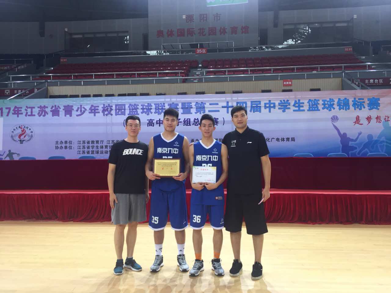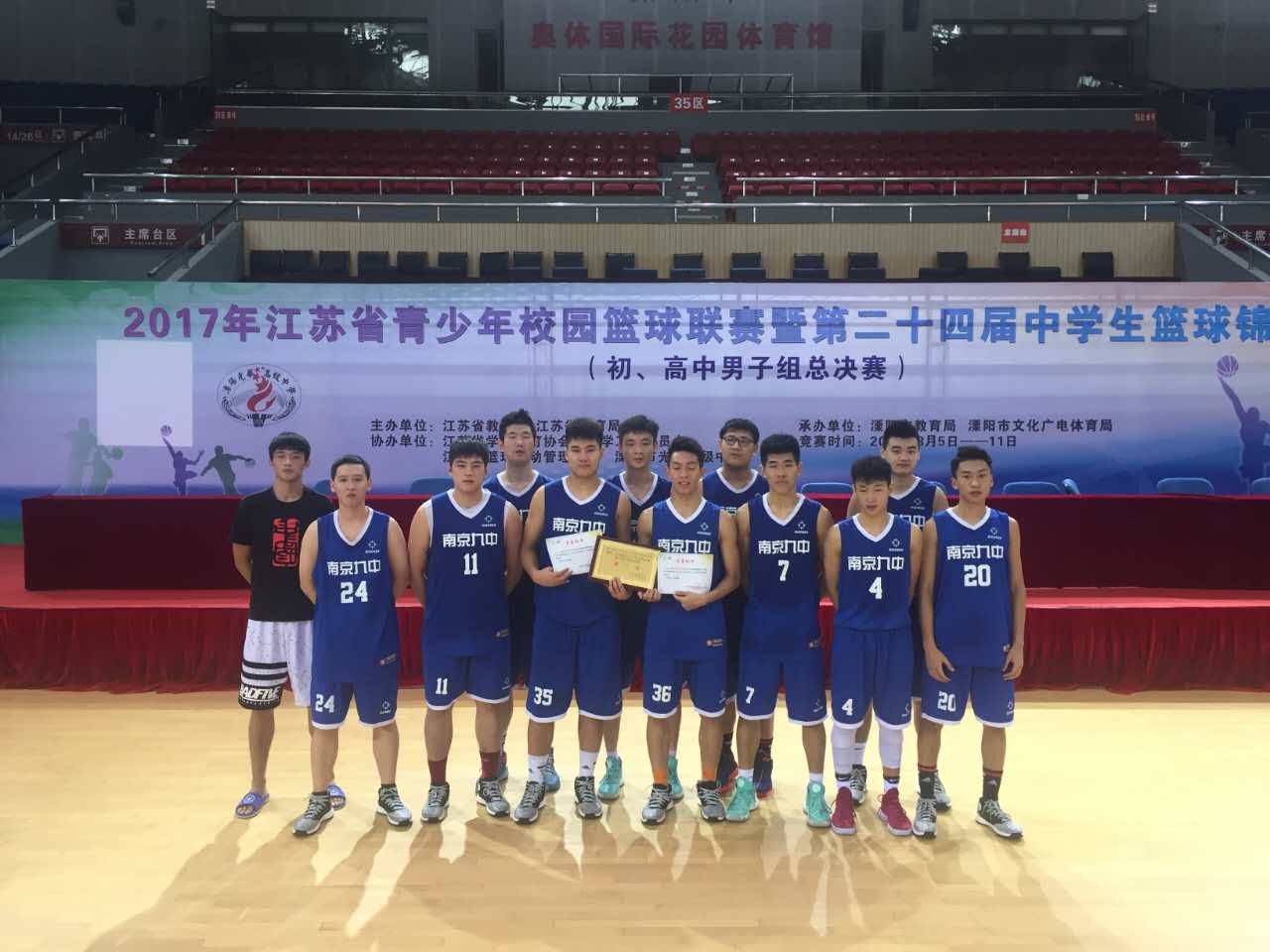 2017年江苏省青少年校园篮球联赛暨第二十四届中学生学校篮球锦标赛高中男子组总决赛中,南京九中男子篮球队凭借着精湛的球技以及默契的团队精神夺得了本次决赛的冠军。江苏省青少年校园篮球联赛暨中学生学校篮球锦标赛是目前省内中学生篮球水平最高、实力最强的赛事。本次比赛由江苏省教育厅和江苏省体育局主办,江苏省学生体育协会协办,溧阳光华高级中学承办。来自省内16所中学的100多名高中生男篮队员在8月5日至9日间总计进行44场比赛。最终南京九中男子篮球队脱颖而出,成为本次比赛的冠军。随着一声哨响高中男子篮球赛结束。体育馆顿时传来阵阵欢呼声!球员们用自己的激情与汗水传达着对运动,对生活的热爱,传达着南京九中男子篮球队友爱互助的团队精神。