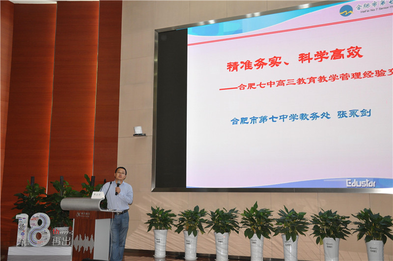 第一天的研讨活动由张翼飞校长助理主持,特别邀请到了两位嘉宾:合肥六中章勇博士为我们介绍:《个性化学习实验报告——基于锚题方式的个性化学习理论和实践经验》、合肥七中教务处张永剑主任从高三教学管理角度谈尖子生培养,“他山之石,可以攻玉”,临近省市的学校的先进经验为我们的优生培养提供了相当丰富的可供借鉴的经验。最后,我校高三年级部主任吴昊老师从自己切身体会与大家交流了新背景下的家校联合、舆情监控以及18届新高三学年规划:《学会将心比心,构筑信任之桥》《严正而有条理——高三年级部整体规划》,务实高效的做法,规则之内,自由飞翔。