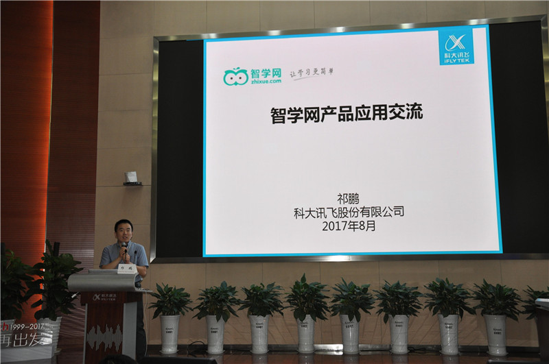 第二天上午的培训活动由王艳飞校长助理主持,一共安排了四个培训。培训一:《教室物联网设备使用》主讲——深圳市艾迪思特信息技术有限公司技术总监:艾梦君;培训二:《数字化学习的综合应用及实践(智能课堂)》主讲——Apple公司教育讲师 杨有云);培训三:《大数据精准教学与智学网应用 》主讲——智学网副总经理、产品总监祁鹏;培训四:《大数据和人工智能时代下的智慧校园》主讲——智学网区域行销总监 丁世军。下午组织大家参观了科大讯飞智慧展厅、中科大先研院、中科大校园和国家同步辐射实验室。通过这一天的培训和参观,老师们充分领略到高科技已经融入人们的生活、App教育产品正在改变教学、运用大数据提供的便利条件将使得教学更加精准高效。