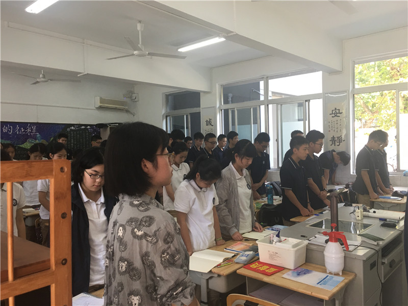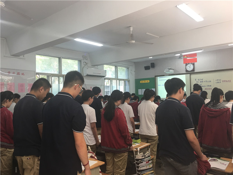 2017年9月18日上午,全省防空警报鸣响,南京九中全体师生听到警报后立即停下手中的工作,正在上课的班级也全部起立默哀。