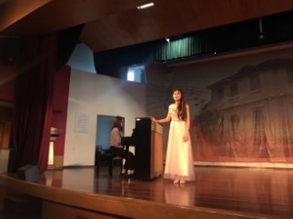 “她”,指的是2018届高三18班的同学。2017年9月26日,高三文艺班声乐汇报在尚美楼三楼演出厅举行,特邀南京师范大学声乐朱艳红教授现场指导,旨在省统考前帮助同学们模拟考试氛围,增加舞台经验,并对学生们的专业表演水平进行及时指导。