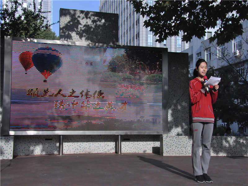 获得“邓颖超学习奖”的高二(12)班的陈景星同学上台发言分享了她的收获。
