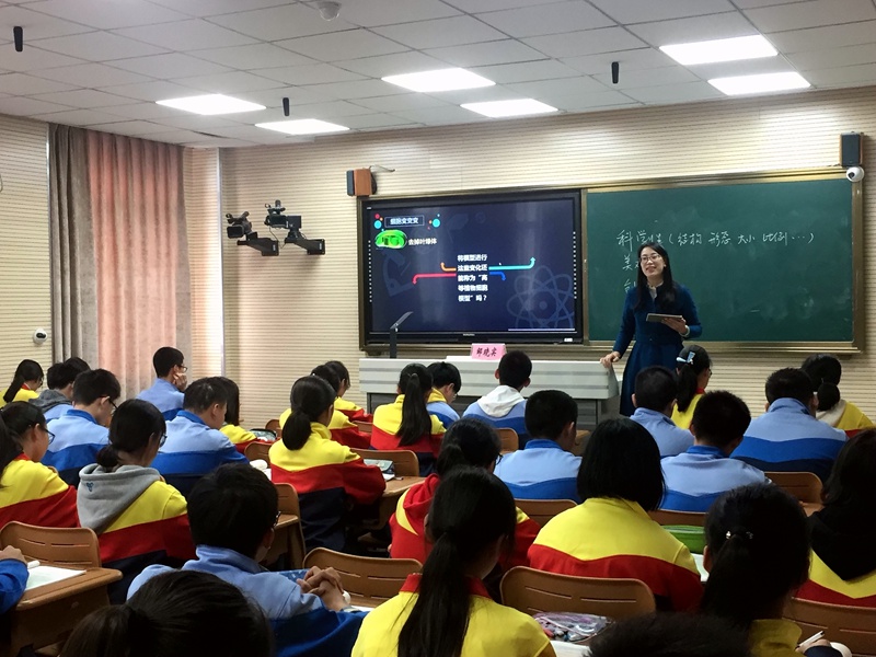 示范课亮点迭起,首先,摆脱固有模式,学习目标新设定。摆脱知识与技能,过程与方法,情感态度与价值观的框架,突出核心素养的培养,从四个方面设定学习目标:科学态度,理性思维,科学探究,科学世界观。初步探索新课改之后的学习目标设定的形式与思路。其次,网络教学,模型制作。网络教学在本次课程中起到了是非重要的作用,身在南京在邹老师,通过网络远程指导扬大附中学生,制作模型,并利用国庆假期期间完成,学生切身体会到了网络教学的不同与乐趣,同时,课堂上使用APP希沃授课助手,极大地解放了教师的双手,很好的做到了实时上传,实时点评,师生互动流畅自然。再次,设计【成果展示】环节,课堂中在邹老师的引领和指导下,学生按小组的形式,并以学生的名字命名组名,选出发言人,汇报作品的制作过程,疑惑和改进措施。通过对各个小组的模型分析,深度学习各种细胞器的大小,形态,结构,功能等,学生学的开心,玩的有趣。最后,设计【拓展提升】环节,通过“细胞变变变”、“特殊细胞模型的构建”等小组活动,引发深度学习、激发深层次的思维探究与合作。例如:在紫色洋葱鳞片叶外表皮细胞、细菌细胞、小鼠心肌细胞、人唾液腺细胞这四种细胞中,每组选取其中一种细胞进行二次模型制作的方案设计,思考并构建模型修改的步骤,确立实施的过程等,并完成小组汇报,直至完美结束课程。