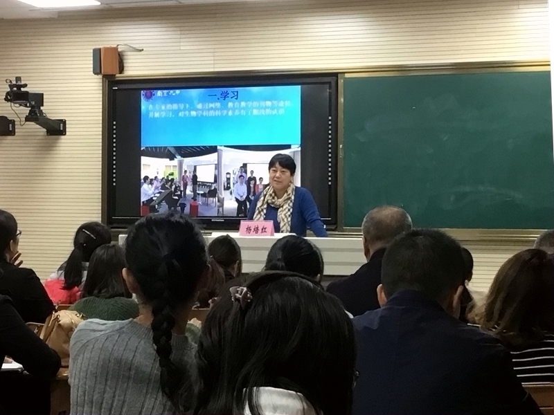 课后,杨培红老师做了题为《基于提升生物科学素养的模型教学——学习•探索与实践•分享》的教后评课及讲座,分享了九中生物组关于核心素养的解读以及深度学习的理论的学习过程,教学实践的探索过程,教研组集体备课、评课、析课的团队合作过程,师生互动、教学相长的过程,教师个人与教研组共同成长的过程以及对模型教学设计的逐步完善过程。