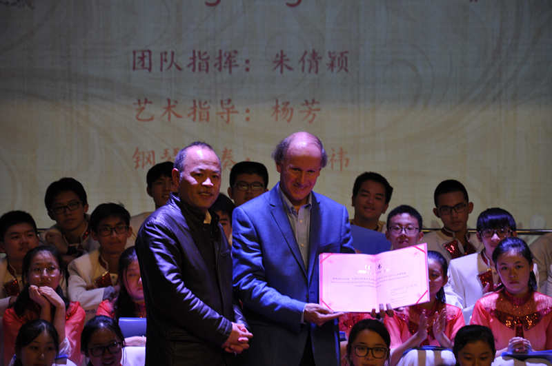张翼飞校长再次感谢了教授的精心指导和同学们的精彩演出,九中校长张恒柱老师为教授颁发指导专家聘书。