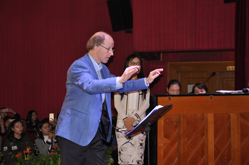 活动第一个阶段是合唱大师班,首先,南京市第九中学合唱团的同学们演唱了《卖花生》和《城南送别》两首歌曲。南京九中合唱团作为南京市教育局设立的中学生合唱一团具有扎实的演唱功底,尤其是混声合唱这种高难度的演唱方式,高中学生在课业之余坚持训练是非常难能可贵的。