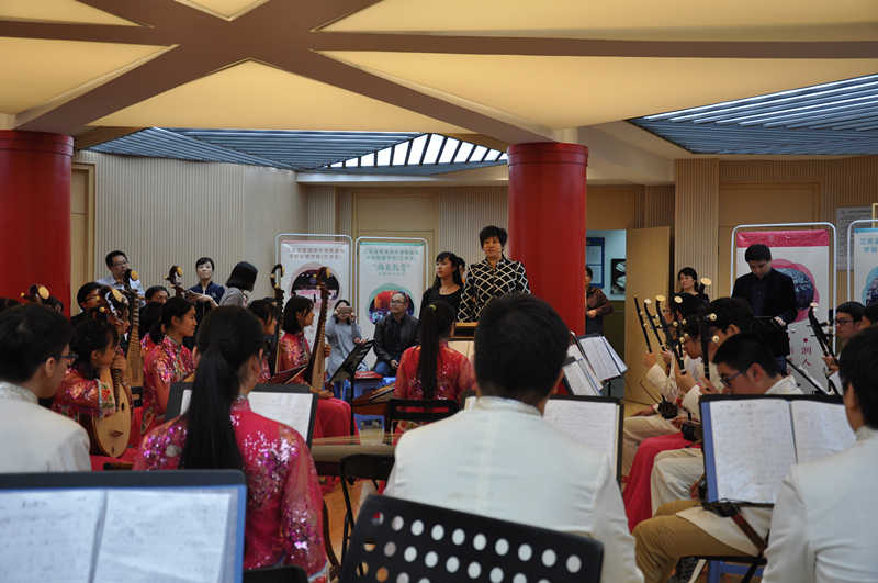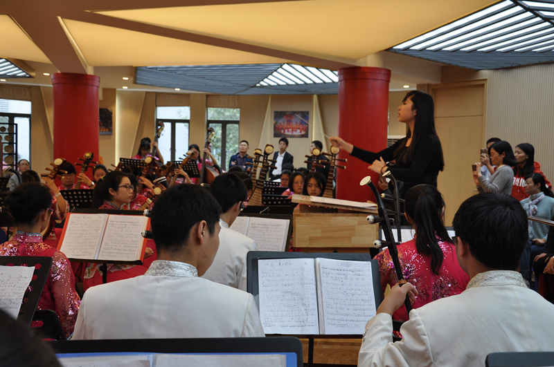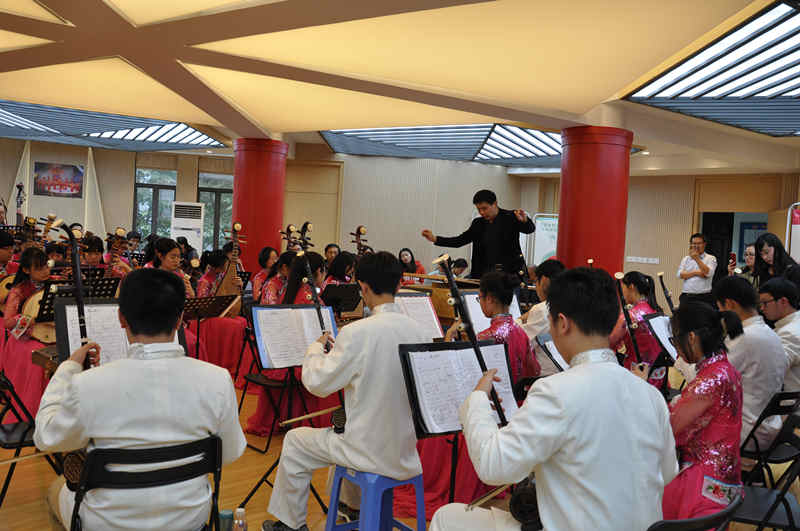 活动的第二个阶段民乐团的合奏。民乐团的张薇老师首先对所有到来的老师进行了热烈欢迎,之后同学们在刘奕廷老师的指挥并指导下排练演奏了《夏日骄阳》。之后,江苏省民乐团张伟老师对同学们的演奏进行了指导,并指出了一些细节的问题:如节奏偏快,在音准上笛子的问题,对二胡弦的把控,在复合拍子时的切换都进行了细致的指导。