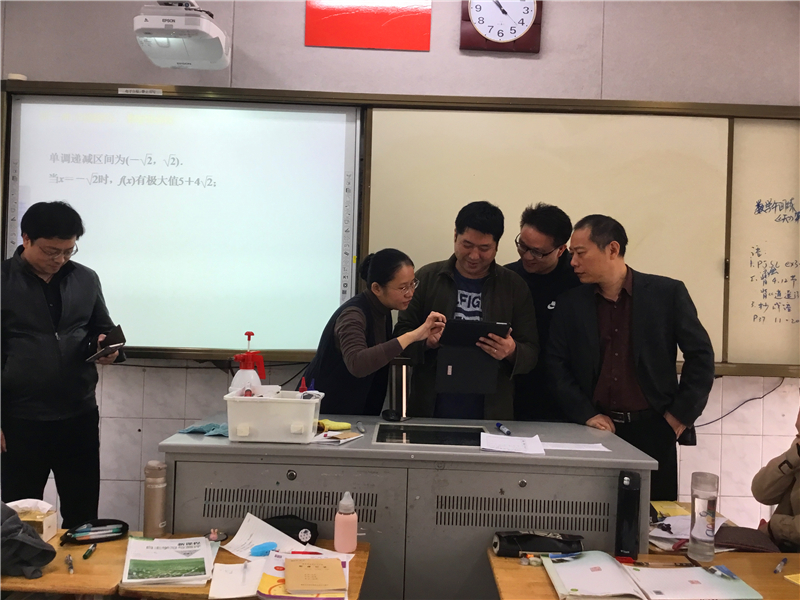 随后,特邀凌敏老师就电子白板的使用难点进行解答,凌敏老师倾囊相授,高二数学备课组老师们认真学习。