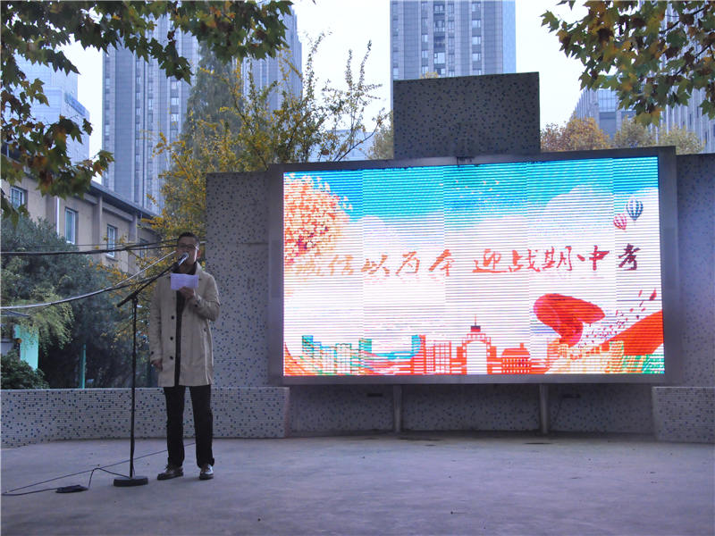 同学们,古语说:“少壮不努力,老大徒伤悲”,可我要说:“少壮知努力,老大无伤悲”。让我们齐心努力,共同奋斗,在充满活力的九中校园,期中考试你们一定会收获美丽。