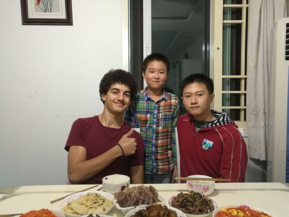 这次homestay接待活动,用餐我们主要安排在家里。每当吃饭时,面对那些平时再熟悉不过的荤菜、素菜,忽然觉得好陌生——英文基本都不太会,只好借助于手机里的词典,边查边聊,倒也不亦乐乎。本来准备了刀叉餐具,没料到Oscar还能熟练地使用筷子。