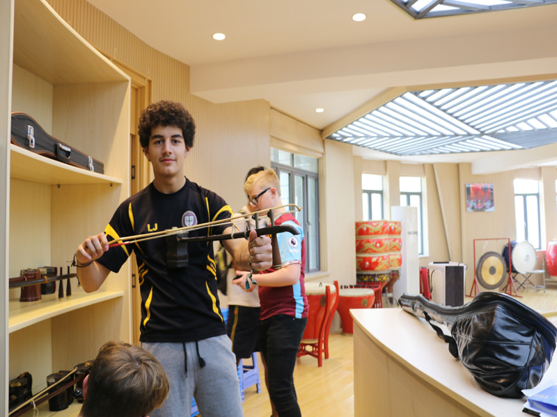 上完课后英国同学参观了美丽的九中校园,知道他们最感兴趣的地方是什么吗?她们最喜欢我们这些民乐乐器了。看看,大家跃跃越试。