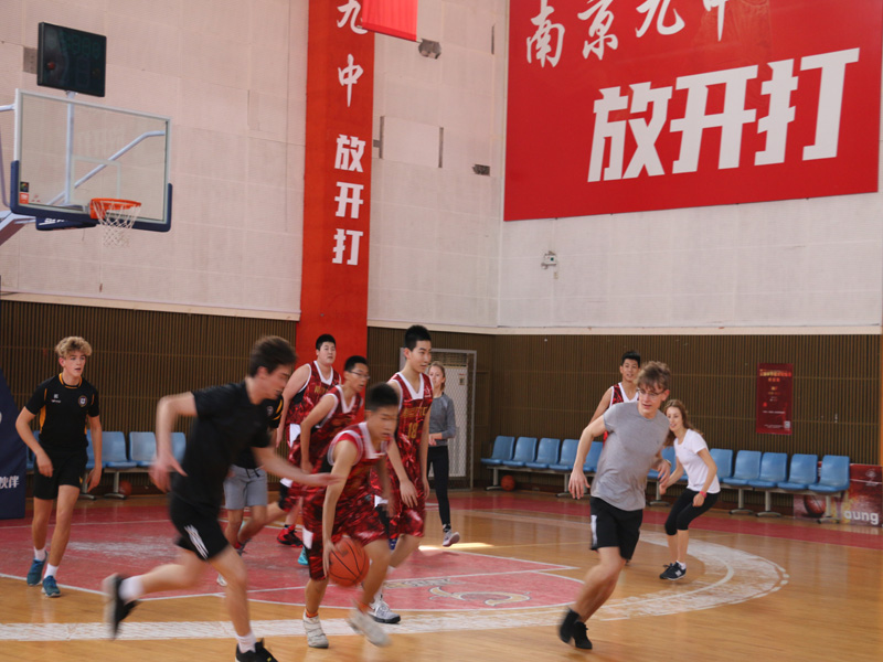 我们美丽的九中校园给对方留下了深刻的映像,下面我们又来了一场篮球赛,只是双方实力悬殊较大,不过我们的篮球队员们表现的都很给力,发挥的让英方学校觉得他们也是很厉害的,这对我们的高水平篮球运动员可是一个挑战哦。