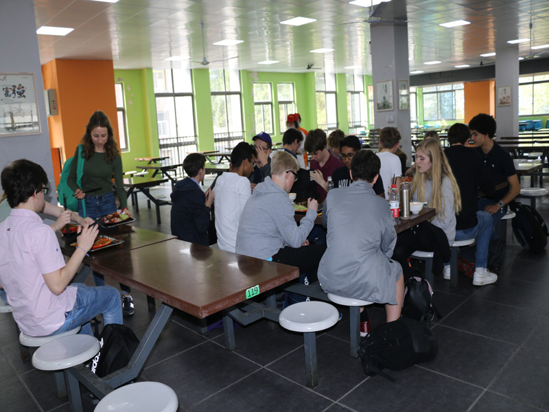 篮球友谊赛后,大家也饿了,九中食堂的美食可是中外有名哦,看,大家吃得多香。